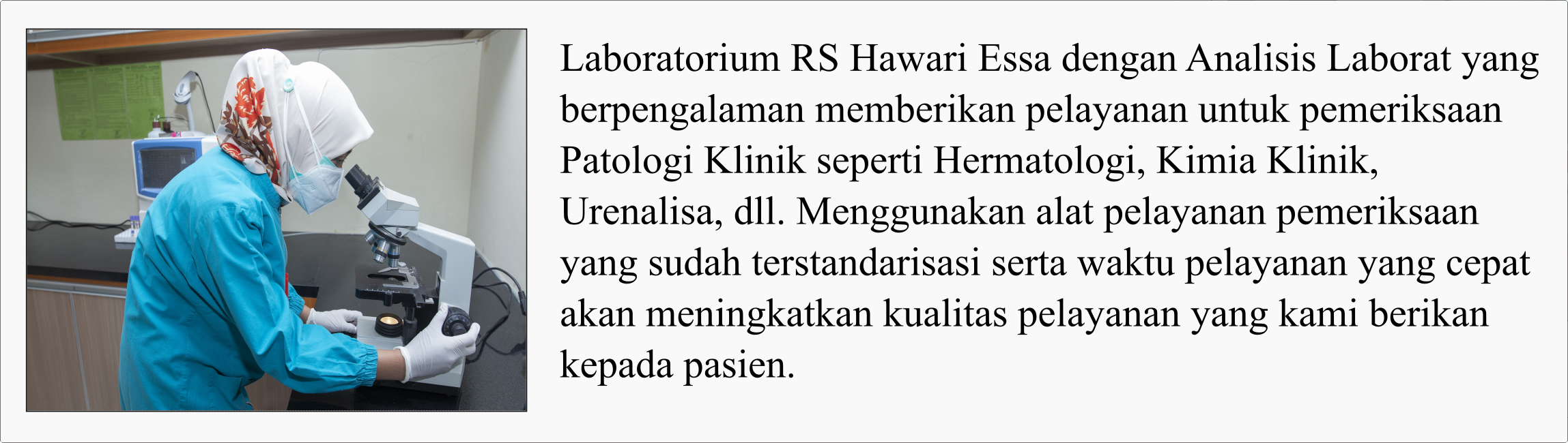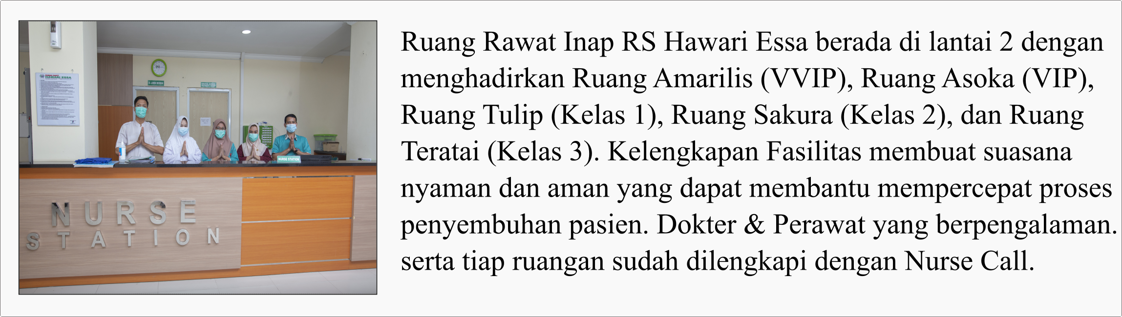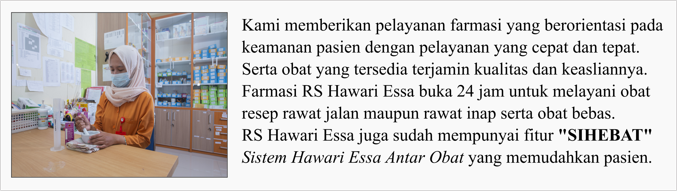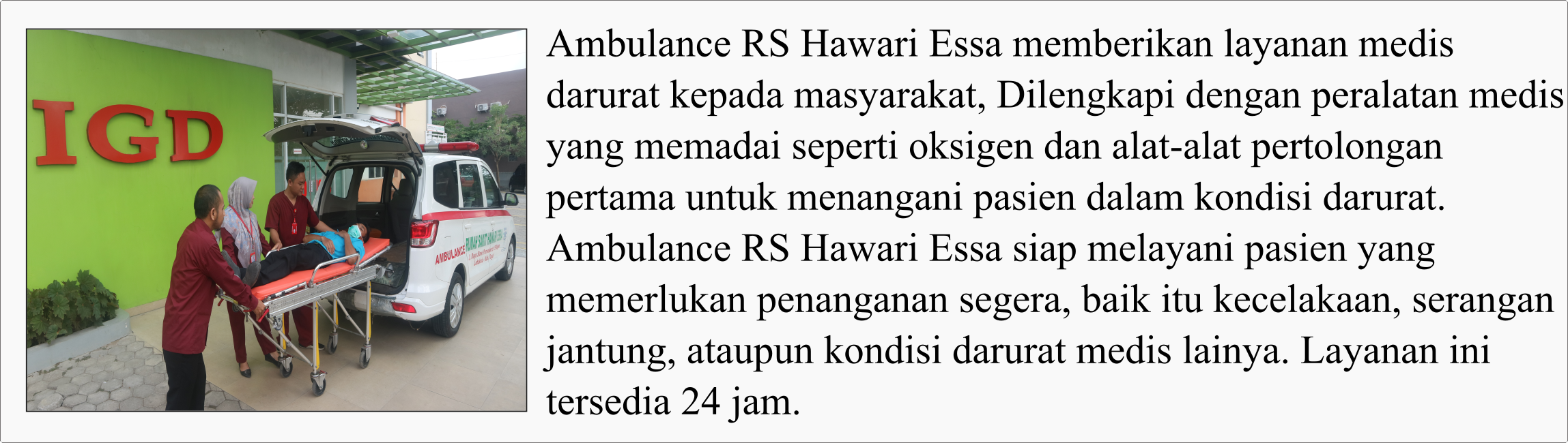 Pelayanan pendukung di RS Hawari Essa meliputi pelayanan medis dan non-medis.