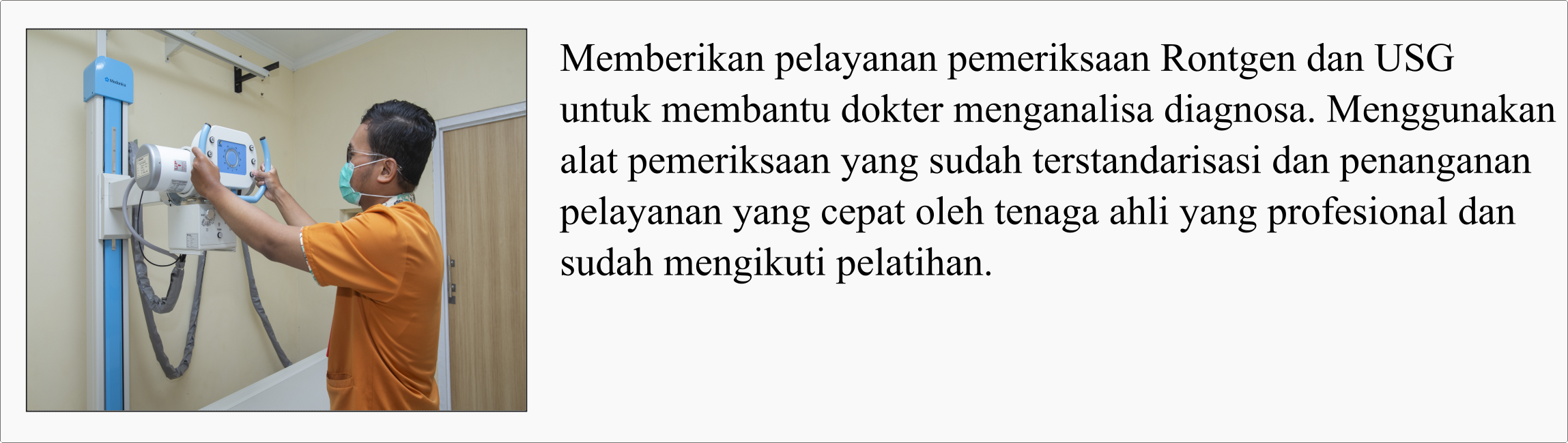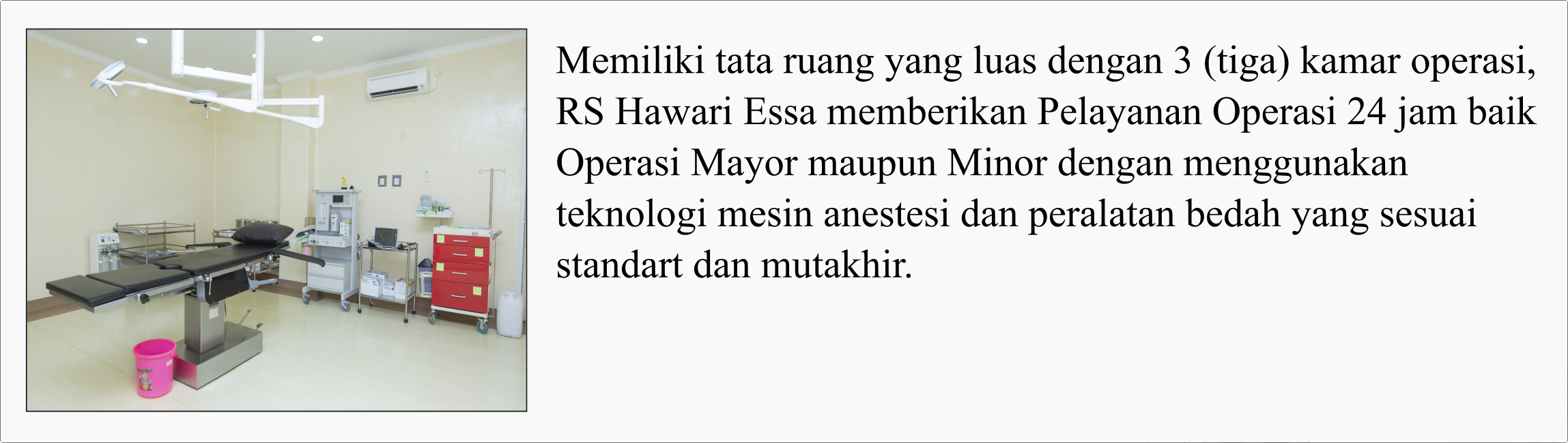 Melayani konsultasi, pemeriksaan dan kasus bedah minor, untuk kasus bedah dari yang ringan sampai berat akan dilakukan tindakan di kamar operasi yang direncanakan.